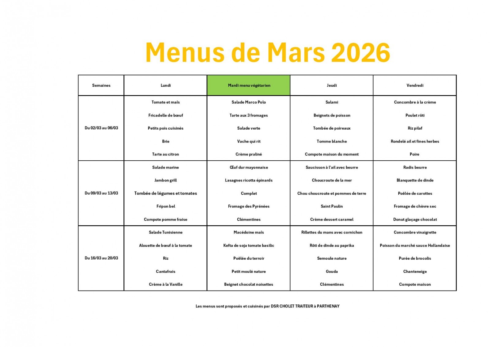Menu cantine Mars 2026